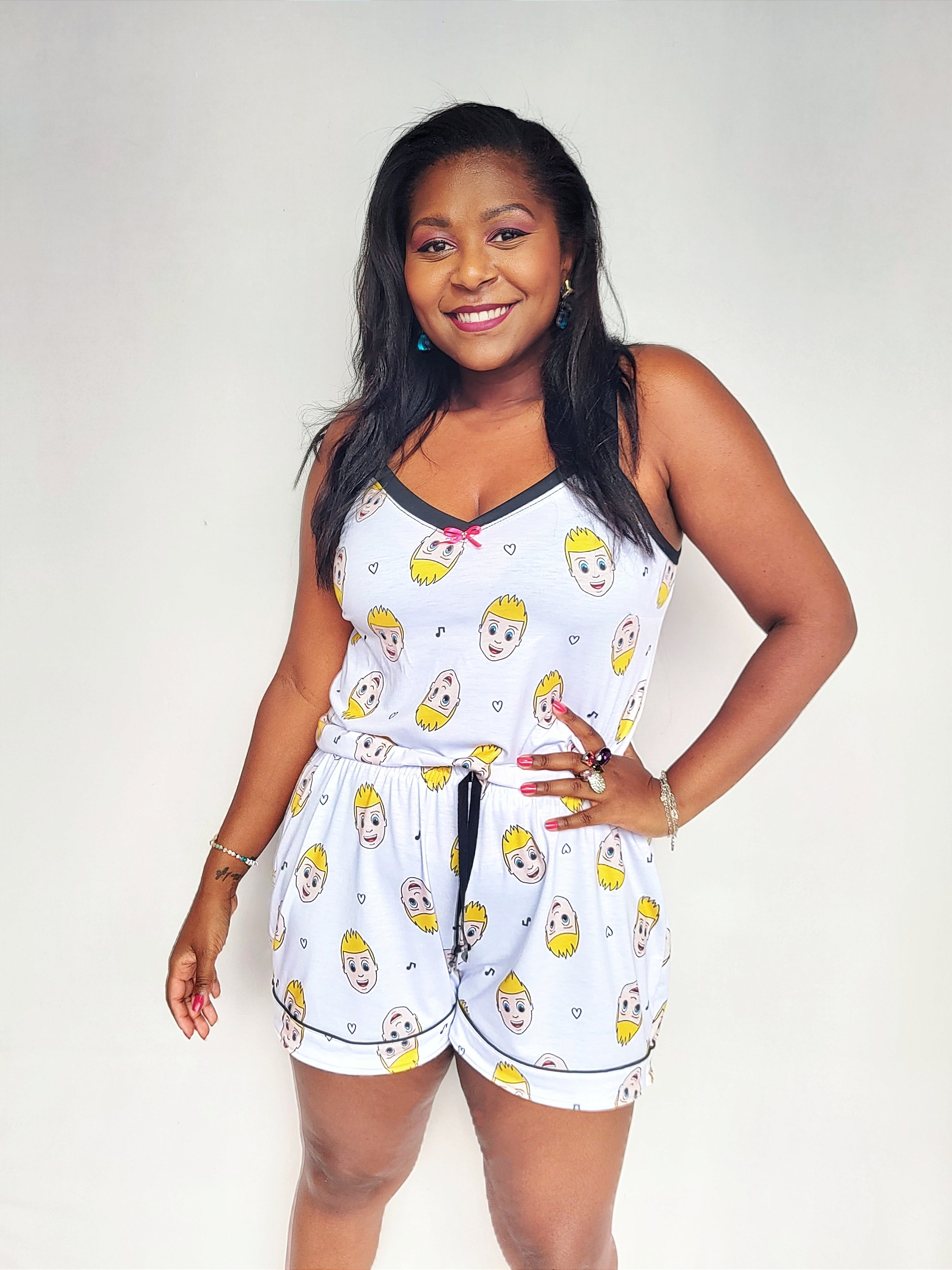 >> Baby Doll: Blusa de Alcinha + Shortinho =Sem mangas, com decote V e alcinhas reguláveis.